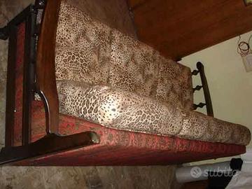 salotto in legno massello di noce, ottime condizioni, recentemente rivestito con tessuto elastico robusto e morbido, composto da 2 poltrone e divano a 3 posti comodi che contiene rete matrimoniale e si apre a letto, c'è anche il tavolino rettangolare sempre in stile