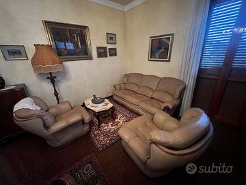 Vendo come da foto soggiorno vintage composto da 2 poltrone e un divano in pelle Beige. Perfette condizioni