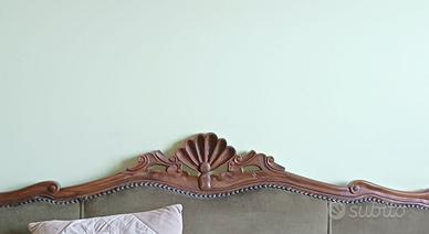 Divano e poltrone risali probabilmente alla metà del XX secolo (anni '50), essendo una riproduzione artigianale in stile Luigi XV o Barocchetto. Caratteristiche principali che ne definiscono l'epoca e lo stile: Stile Luigi XV (Rococò): Il mobile riflette il gusto del XVIII secolo, caratterizzato da linee sinuose, gambe "mosse" (cabriole) e l'assenza di angoli retti. Dettagli Intagliati: Il coronamento centrale presenta un tipico motivo a conchiglia (rocaille), elemento distintivo di questo stile che richiama forme naturali. Materiali: La struttura appare realizzata in legno di noce intagliato, con un rivestimento in velluto verde. Inquadramento Storico Sebbene il design originale risalga al '700, questo specifico modello è coerente con la produzione di mobili di stile diffusa in Italia tra gli anni '40 e '50. In quel periodo, molte botteghe artigiane realizzavano "salotti completi" (divano e poltrone coordinate) che riprendevano le forme classiche francesi per arredare le case della borghesia. Seduta rifatta una decina di anni fa