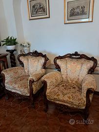 Nr. 1 divano e Nr. 2 poltrone in stile veneziano.