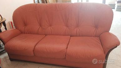 come da foto vendo un divano per tre posti e due poltrone posti singoli. colore rosa antico materiale ecopelle . possibilità di ritiro a mano.
