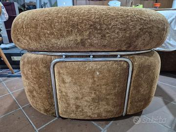 Divano 3 posti in tessuto metallo tubolare anni ’70 Vintage e n. 2 poltrone in tessuto metallo tubolare anni ’70 Vintage Rivestimento in tessuto di ciniglia marrone chiaro.