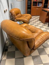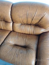 Divano 3 posti + 2 poltrone vintage color cuoio buone condizioni