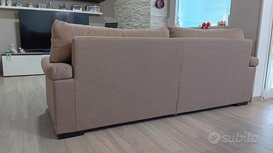 divano 3posti più pouf contenitore molto grande, color mandorla, usato da 3 anni meticolosamente . come nuovo. per le misure esatte chiedere