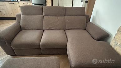 Vendo divano e pouf contenitore di poltrone e sofà praticamente nuovo con ancora 3 anni di garanzia. Il divano presenta una penisola fissa e un recliner elettrico e il pouf è contenitore.