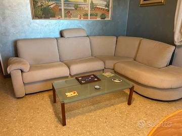 vendo divano marca Doimo ad angolo con il suo tavolino da sala in vetro e legno