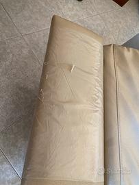 Il divano ha una struttura nuovissima,un anno di vita,l'unico difetto é l'ecopelle rovinate nei punti dove vedete,al lato destro si trova un alza piedi manuale,con una semplicissima foderazione diventa nuovo ,prezzo originale 1,500€.