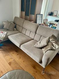 Vendo divano moderno ego italiano con chaise longue in ottime condizioni del 2021 e schienali regolabili. Tessuto lavabile color tortora chiaro. Piedi in metallo neri • Lunghezza: 270cm • Profondità: 90 cm • Penisola: 160 cm