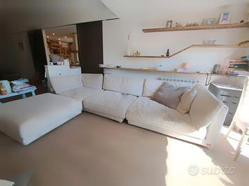 Elegante divano della collezione Maestro (poltrone&sofa') composto da 4 grandi moduli sganciabili e ricomponibili (2 moduli angolari lati dx e sx, 1 modulo centrale e 1 modulo quadrato senza spalliera-come da foto- utilizzabile come chaise longue oppure come modulo centrale aggiuntivo o pouf). Tessuto in microfibra bianco ghiaccio interamente sfoderabile e lavabile. Ferma restando la possibilita' di comporre i moduli a proprio piacimento, la lunghezza del divano considerandolo composto dai 3 moduli principali (come in foto-con il quarto modulo posizionato come chaise longue) e' di cm 340 cm. Profondita cm 106. Il modulo aggiuntivo/pouf e di cm 106x96. Prezzo trattabile con possibilita di acquistare i moduli singolarmente.