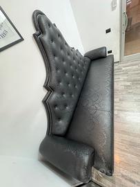 Vendo divano elegante in ecopelle nera, ideale per negozi, barber shop, studi professionali o abitazioni con uno stile raffinato e moderno.