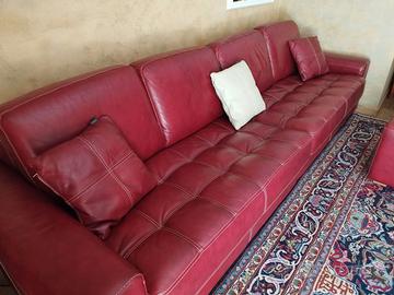 In perfette condizioni divano comodissimo da 3 metri in vera pelle martellata rossa, completo di puffo e 3 cuscini tutto in pelle.