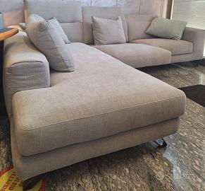 DIVANO AD ANGOLO MODELLO ZIPPY SPECIAL CON PIEDE ALTO, CHAIS LONG 238 CM, SEDUTE ESTRAIBILI MANUALI, TESSUTO ANTIMACCHIA
