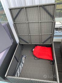 Vendo divano 4 pezzi separabili,2 con contenitore,1 puff contenitore a parte Imbottitura appena rifatta e rivestimento lavabile nessun difetto Vendo tutto completo