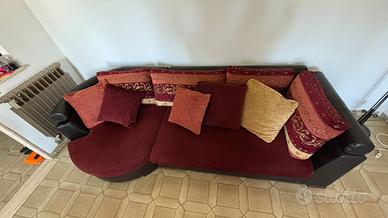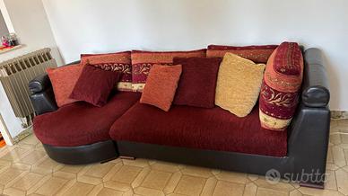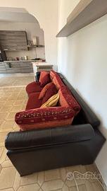 Come nuovo multicolore cotone e pelle sedute schienali e cuscini tutto completamente sfoderabile e lavabile. Larg. 265 cm h. 70 cm larg. seduta 100 cm penisola 120 cm braccioli/poggiatesta regolabili