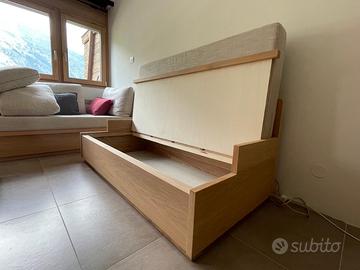 Il divano si trova a La thuile, è perfetto per casa di villeggiatura visto lo spazio sottostante in cui possibile riporre molto