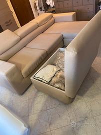 Completamente sfoderabile/lavabile divano con penisola di ottime dimensioni 285 x 200 con penisola,puffo contenitore e poggiatesta reclinabili