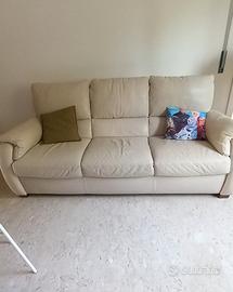 Divano Fenice colore bianco crema materiale lavabile in vera pelle 3/4 posti profondità 0,86 lunghezza 2,05 ideale per appartamento-locali-Teatri ecc..