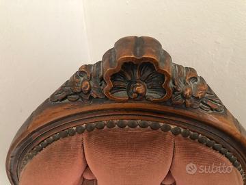 Grazioso divanetto più poltroncine recentemente rivestito a nuovo. Molto decorativo adatto per rendere l'entrata o un angolo della casa caldo e accogliente