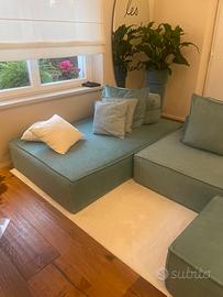 Vendo doppio divano Filippo Ghezzani, modello Monsieur per cambio casa. Le dimensioni sono 180x110x37 piu pouf abbinato. Colore azzurro, ottimo stato. Solo due piccole imperfezioni di cui allego foto, che giustificano il prezzo. Tutto lavabile e sfoderabile. Leggero e comodo da spostare e posizionare come si preferisce.