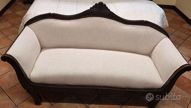 Si tratta di un divano da mettere ai piedi del letto o in zona entrata... due posti ristrutturato e con tessuto nuovo messo ad agosto da tappezziere. Colore bianco panna, tessuto non liscio, molto carino e nuovo. Spedizione e ritiro a vs carico.
