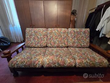 Divano fiori con braccioli in legno