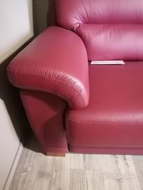 Divano fisso 3 posti colore bordeaux in pelle spessorata misure cm. 205 X 95 di profondità €. 790 sottocosto Prezzo di listino €.1600