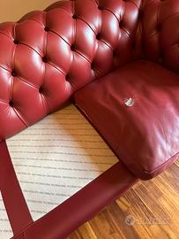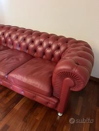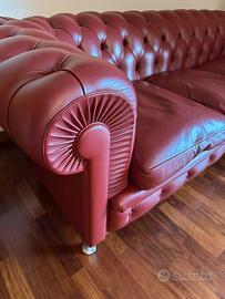 Divano Frau modello Chester a 3 posti da cm. 210 con piedini in acciaio inox rivestito in pelle (cod. colore 97) color Amaranto.