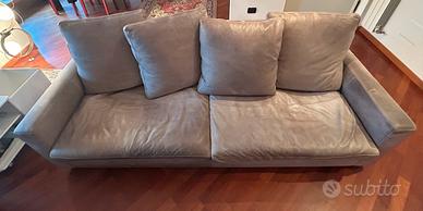 Marca: Poltrona Frau Modello: Massimo Sistema Colore: Tortora Materiale: Pelle di alta qualità con imbottitura in piuma d’oca da poco rifatta. Design: Presenta cuscini di seduta e schienale ampi e imbottiti che ne enfatizzano la morbidezza, con una cucitura a due aghi che aggiunge un dettaglio prezioso. L.230 P.95 H.85 cm