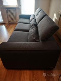 Vendo divano modello Frigento 5 posti Poltronesofa' acquistato a novembre 2021; rivestito in tessuto grigio antracite, è interamente sfoderabile e lavabile, ed include cuscini lombari e poggiatesta regolabili. Si presenta in ottime condizioni, con garanzia residua di 8 anni sulla struttura. Dimensioni: 287x111cm.