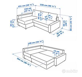 Vendo divano IKEA Friheten con chaise longue, facilmente trasformabile in un comodo letto matrimoniale.