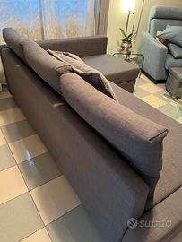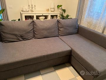 Divano letto usato ma in ottime condizioni. Con contenitore, colore grigio. Regalo anche i cuscini grigio chiaro in foto, non facenti parte del modello originale. Non spedisco.