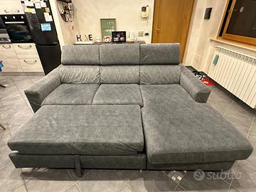Divano Poltrone&Sofà grigio antracite con chaise longue, apribile, poggiatesta reclinabili in 3 posizioni. Larghezza 230cm, lunghezza chaise longue 183cm