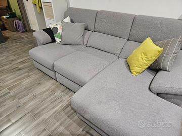 Vendo Divano Fusignano Poltrone e Sofà 4 posti con penisola. Ottimo stato, in tessuto grigio sfoderabile. Poggiatesta reclinabili e sedute centrali estraibili per ampliare comodità e sedute. Misure reperibili in foto. Prezzo trattabile