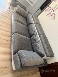 Divano 3 posti Poltrone e Sofà modello Gimigliano, design moderno con linee essenziali e molto elegante. Rivestimento in tessuto grigio effetto vellutato. Caratteristiche: - Sedute ampie e profonde, molto confortevoli - Poggiatesta reclinabili regolabili - Braccioli inclinati ergonomici - Piedini in metallo rialzati - Struttura solida e di qualità Fattura d’acquisto disponibile. Ritiro a Olmi di San Biagio di Callalta, primo piano con ascensore.