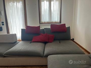 Divano con cuscini, completamente sfoderabile, grigio e bianco. Comodo, di dimensioni generose per potersi allungare e sentirsi già a proprio agio. La poltrona si può attaccare al divano tramite supporti originali sia da un lato che dall'altro favorendone la versatilità o può essere anche separata.