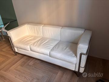 Divano 3 posti di design, replica di qualità del Grand Confort Petit Modèle disegnato da Le Corbusier nei primi del '900. Ha il telaio in tubi d'acciaio cromato e cuscini amovibili in poliuretano e ovatta.
