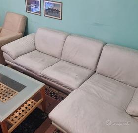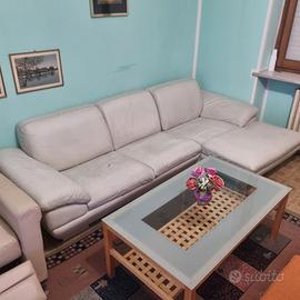 Divano ampio in vera pelle, Comodo, robusto, con penisola e ideale per salotto o taverna.