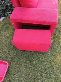divano gratis 3 posti con comodini estraibile la macchia in centro e di acqua.ho comprato un più piccolo e non so dove metterlo. colore Rosso