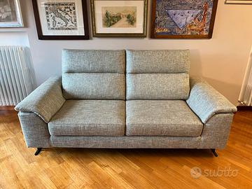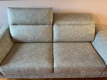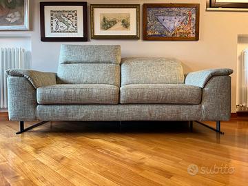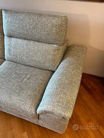 Caratteristiche: Versione in tessuto grigio (completamente sfoderabile), schienali reclinabili, struttura legno, imbottitura poliuretano, piedini design Brim in metallo nichel nero (H 14 cm).