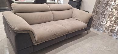 divano Franco Divani color grigio chiaro e grigio scuro. larghezza 2,14 m con poggia testa reclinabile.