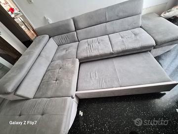 Vendo divano grigio con penisola in velluto.