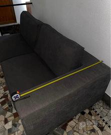 Vendo divano in tessuto grigio con bracciolo sul lato sinistro.