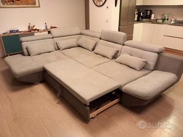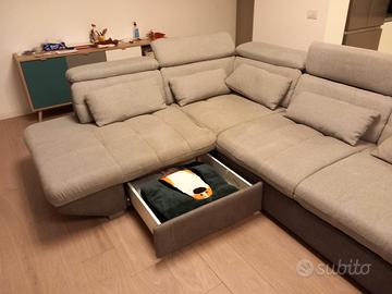 Divano in tessuto con chaise longue 300 x 190 con divano letto e cassetto estraibile, non sfoderabile
