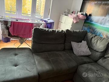 Vendo divano,per motivi di spazio E in ottime condizioni,diventa divano a letto Color grigio scuro,lavabile Prezzo trattabile
