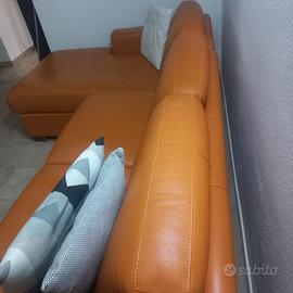 Vendo divano in vera pelle, colore arancione misure 2,80x90, penisola 1,65