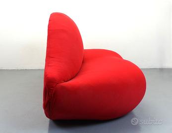Iconico divano modello 'Bocca' Originale con certificato, disegnato da Studio 65 e prodotto da Gufram negli anni '70. Realizzato come omaggio a Dalì, nello specifico idea ripresa dal volto di Mae West. Imbottito in poliuretano espanso è rivestito in tessuto elasticizzato rosso.