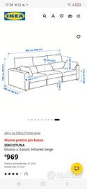 Vendo grande e comodo divano ikea nuovissimo tenuto sempre coperto. Colore beige Misure nell ultima foto. Piano terra