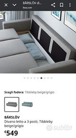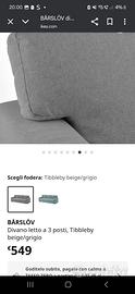 Vendo Divano Ikea Barslov nuovissimo comprato da un mese,con vano contenitore e diventa anche letto...cambio solo per via del colore che non dona con l'arredamento (grigio come foto)