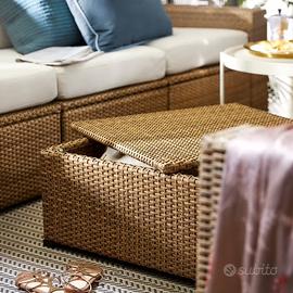Divano IKEA componibile da esterno con contenitore. Ogni modulo, incluso quello con contenitore, ha il proprio cuscino, così da poter formare un divano a L oppure essere utilizzato separatamente. Video https://youtu.be/DbnyS8f6Qic?si=O_BPYu1QRbUR2_qf + il contenitore
