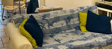 Nelle foto allegate era coperto da un copri divano azzurro, ma la fodera originale è di color bianco.